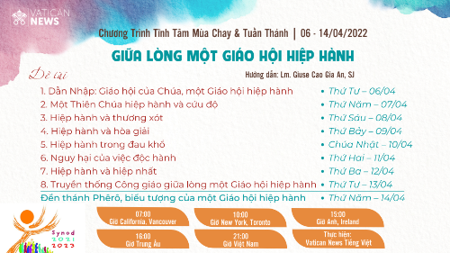 Chương trình tĩnh tâm Mùa Chay 2022 với chủ đề “Giữa Lòng Một Giáo Hội...