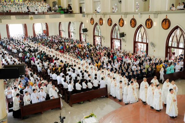 Phường Tân Hòa, TPHCM, một đơn vị hành chính mới được thành lập trên cơ sở sáp nhập ba phường 6, 8 và 9 của quận Tân Bình cũ, là nơi sinh sống của hơn 61.000 người trên diện tích khoảng 2.67km2. Trên địa bàn phường có 7 giáo xứ, trong đó 5 giáo xứ thuộc hạt Chí Hòa là Lộc Hưng, Nam Hòa, Nghĩa Hòa, Vinh Sơn, Xây Dựng và 2 giáo xứ thuộc hạt Phú Thọ là Tân Trang và Tân Phước. Ngoài 7 nhà thờ còn có các đền thánh và thánh đài của các khu giáo thuộc các giáo xứ. Vừa qua, trong đợt thuyên chuyển các linh mục ở TGP TPHCM, nơi đây có 3 giáo xứ Lộc Hưng, Nam Hòa, Nghĩa Hòa thay đổi cha chánh xứ; riêng giáo xứ Vinh Sơn, cha quản nhiệm được bổ nhiệm là chánh xứ.